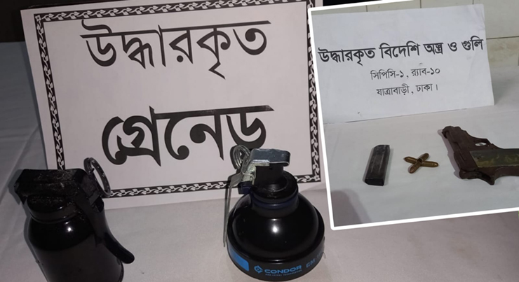 রাজধানীর ডেমরা ও মুন্সিগঞ্জের সিরাজদিখান এলাকায় পৃথক অভিযান চালিয়ে পরিত্যক্ত অবস্থায় গ্রেনেড, বিদেশি পিস্তল, ম্যাগাজিন ও গুলি উদ্ধার করেছে র্যাব-১০। বৃহস্পতিবার র্যাব-১০, সিপিসি-১ যাত্রাবাড়ী ক্যাম্পের ভারপ্রাপ্ত কোম্পানি কমান্ডার এসএম হাসান সিদ্দিকী...